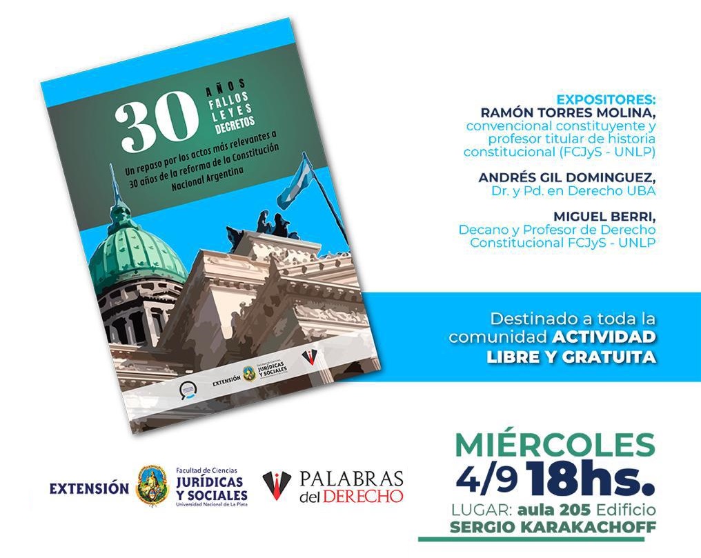 Este miércoles 4/9 a las 18hs. presentamos el libro digital “30 AÑOS. Fallos, Leyes y Decretos: Un repaso por los actos más relevantes a 30 años de la reforma de la Constitución Nacional Argentina”.